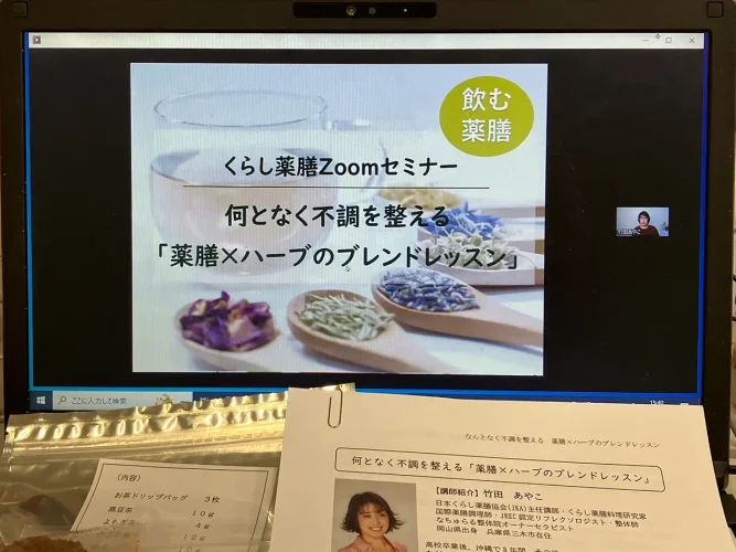 JKAで開催しているZoomを利用したオンラインセミナーです。2026年3月14日開催分、薬膳茶ブレンドレッスンのセミナーレポートをお届けします。
